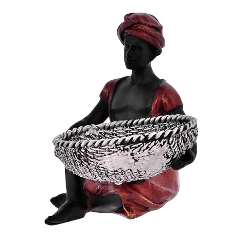 Deveie Crafts Resin Modern Art Decorative Flower Black Lady with Basket Statue for Living Room and Home Decor, Showpiece for Decoration,(29 X 18 CM)