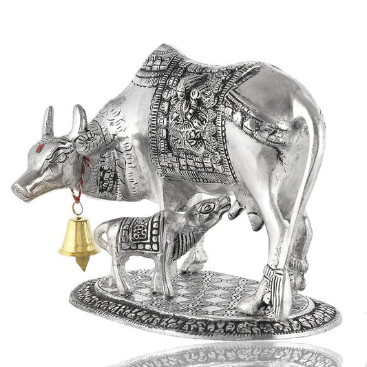 Deveie Crafts Metal Kamdhenu Cow Showpiece Fr Home Décor, Living Room, Table Décor, Vastu Decorations (16X18 CM)