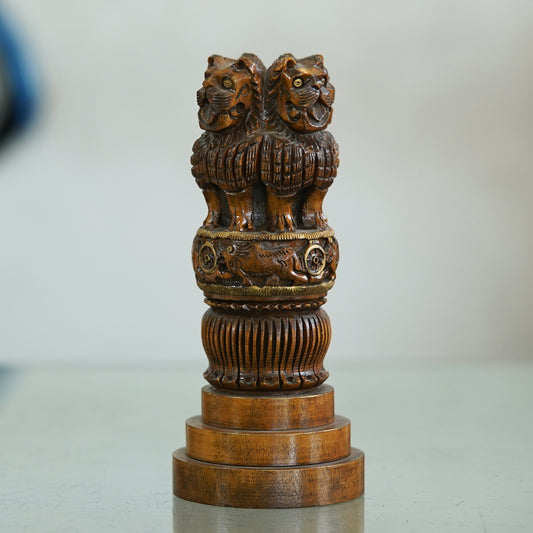 Deveie Crafts Wooden Ashoka Pillar Replica - Indian Heritage Décor