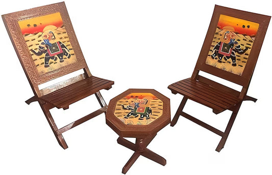 Deveie Crafts Rajasthani Mughlai Art Handmade Wooden Ethinic Antique Designer Folding Chairs and Table Set.