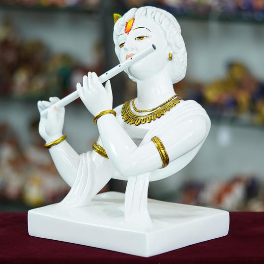 Deveie Crafts Marble Handmade Flute Krishna for Home Décor Handcrafted Showpiece for Table Décor Temple Décor